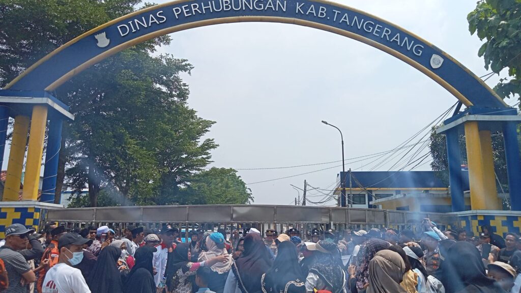 Paparan.co – Tangerang, Dishub di kepung massa aksi (Jayanti Balaraja Menggugat) JBM, massa aksi menuntut perbup Nomor 12 tahun 2022, segera di terapkan dan dijalankan dengan tegas, jangan dianggap dagelan, terkesan menutup mata pemerintah pemangku kebijakan segera ambil langkah tegas, dan selektif berpihak kepada masyarakat.
